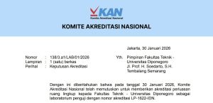 Fakultas Teknik Universitas Diponegoro kembali mencatatkan pencapaian membanggakan melalui perolehan keputusan akreditasi dari Komite Akreditasi Nasional (KAN). Berdasarkan surat bernomor 138/3.a1/LAB/01/2026 tertanggal 30 Januari 2026,