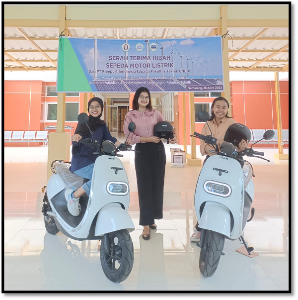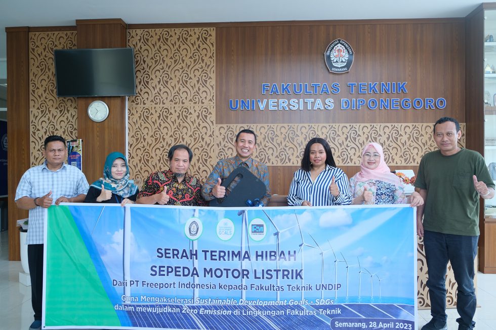 Freepot Indonesia ikut berkonstribusi dalam upaya mengurangi dampak perubahan iklim akibat pemanasan global melalui akselerasi Sustainable Development Goals(SDGs) kepada institusi pendidikan untuk mendukung Kampus Hijau, seperti Universitas Diponegoro. Program SDGs dilakukan berupa pengadaan motor listrik. Motor listrik yang dihibahkan diserahkan kepada Departemen Teknik Lingkungan melalui Fakultas Teknik Universitas Diponegoro yang diselenggarakan pada hari Jumat, 28 April 2023. Pemberian 2 unit motor listrik diterima oleh Dekan Fakultas Teknik Universitas Diponegoro oleh Prof. Ir. M. Agung Wibowo, M.M., M.Sc., Ph.D. Dengan pemberian motor listrik ini, diharapkan dapat menjadi kendaraan operasional intra kampus yang ramah lingkungan dan zero emission.