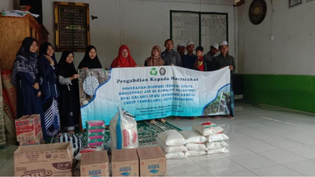 Tim pengabdian dari Departemen Teknik Lingkungan Universitas Diponegoro yang terdiri atas Ibu Anik Sarminingsih, Ibu Sri Sumiyati dan Bapak Wiharyanto Oktiawan beserta tim mahasiswa Ash Habul Kahfi dan Filial Dhiya Thifalina melakukan pemasangan biopori pada Kawasan Pondok Pesantren Galang Sewu yang terletak di Kelurahan Tembalang, Kota Semarang. Tujuan dari kegiatan pengabdian masyarakat ini adalah agar Masyarakat dapat memahami dan dapat menanamkan kesadaran akan pentingnya lahan terbuka untuk peresapan air hujan ke dalam tanah serta mampu mengurangi buangan sampah organik ke TPS.